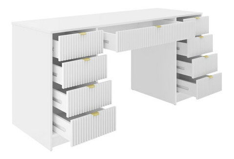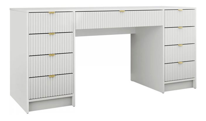 ZobrazitPoznejte model, který bude fungovat při mnoha úkolech. Moderní toaletní stolek Rozoma Bis poskytne prostor pro práci a studium Dá se použít i jako funkční zóna krásy. zásuvkami je skvělý způsob, jak si zorganizovat prostor. doplněný frézováním na čelech zásuvek a úchyty zlaté barvy.
