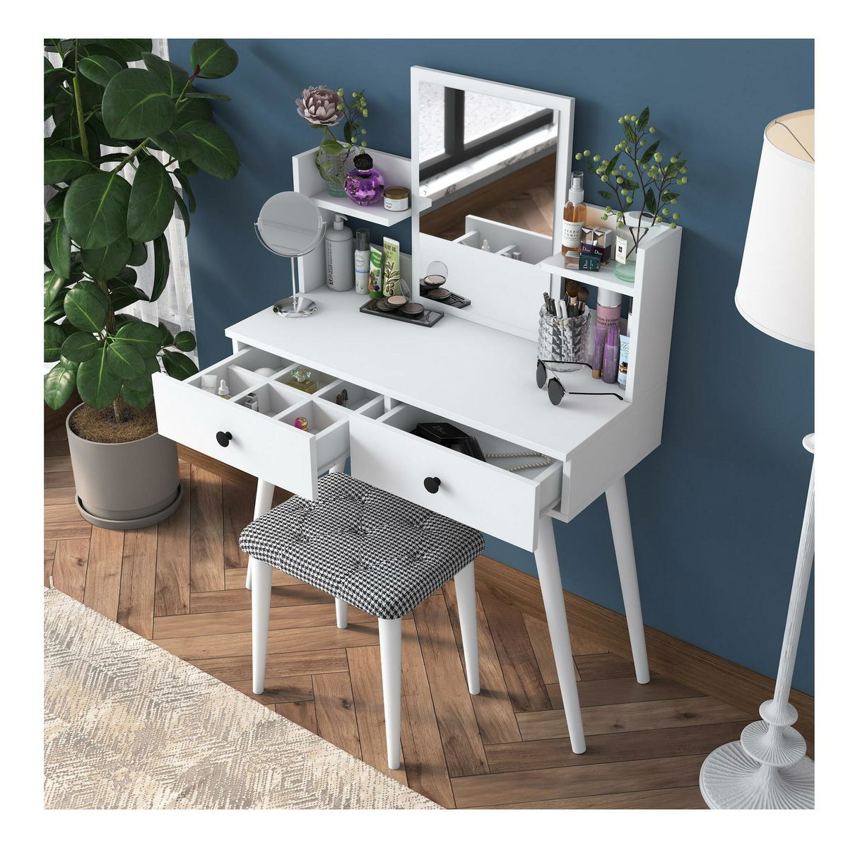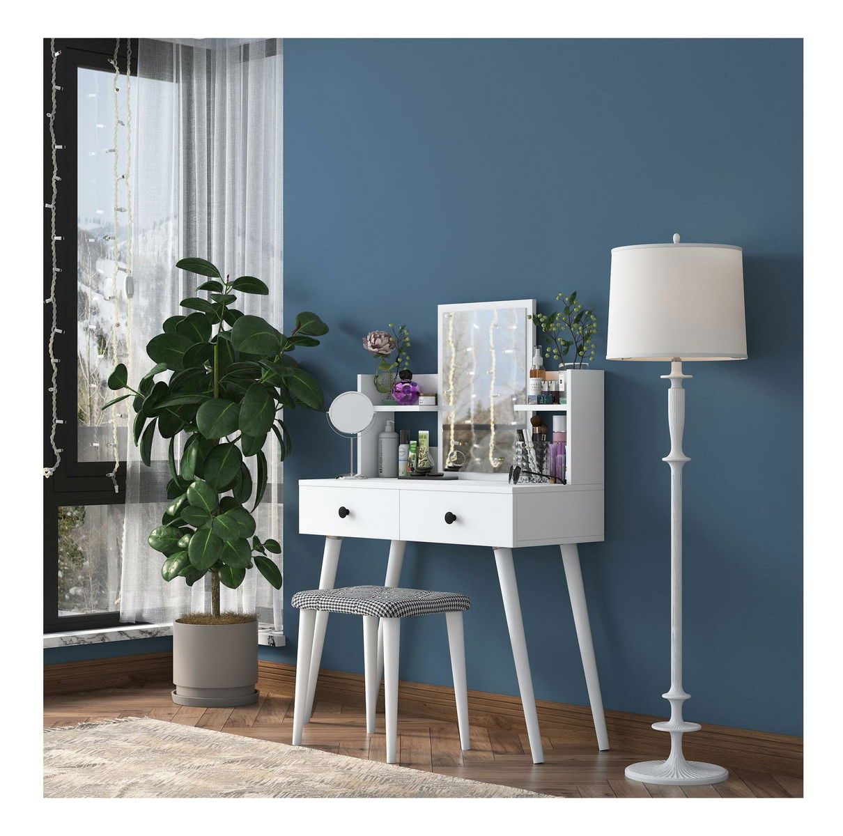 Toaletní stolek s taburetkou Blake 102 (bílá)