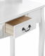 Toaletní stolek se hodí do každé ložnice v retro stylu. Vychutnejte si sezení na pohodlné židli, která je součástí soupravy. Stolek je vybaven zásuvkou a nastavitelným zrcadlem, jehož polohu lze horizontálně měnit. Celá sestava je vyrobena z masivního MDF a má velmi elegantní a jednoduchý design, který doplňují zajímavě tvarované nohy.