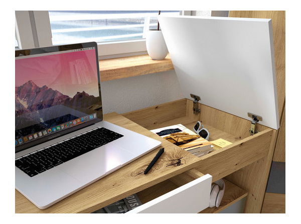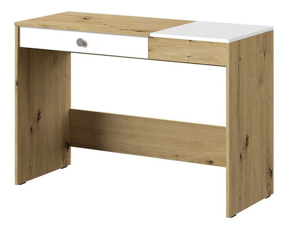 ZobrazitPsací stůl je ideální volbou pro ty, kteří hledají pohodlí a styl. Rozměry: šířka: 120 cm, výška: 82 cm, hloubka: 50 cm Provedení: 16 mm silná laminovaná deska, 0,5 mm ABS ráfek, stůl má zásuvku a víko, zásuvky: kuličkové vedení, plné vysunutí, panty: GTV, držadla: plastové, nohy: černé