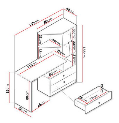 Psací stůl s regálem je ideální volbou pro ty, kdo hledají pohodlí a styl. Rozměry: šířka: 150 cm, výška: 153 cm, hloubka: 50 cm Provedení: 16 mm silná laminovaná deska, 0,5 mm ABS ráfek, zásuvky: kuličkové vedení, plné vysunutí, panty: GTV, držadla: plastové, nohy: černé Záruka: 24 měsíců