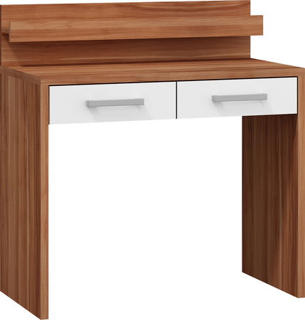 Praktický toaletní stolek bude sloužit zejména ženám na uložení drogerie a šperků. V kombinaci se zrcadlem vytvoří to správné místo pro úpravu zevnějšku. Obsahuje dvě zásuvky a poličku se zábranou proti spadnutí předmětů umístěných na ní. Je to prvek z ložnicového sektoru modelové řady Vera. Můžete si vybrat až ze čtyř barevných kombinací. Barva dřeva švestka s bílými zásuvkami, wenge s krémovou barvou, dub sonoma s bílým leskem a švestka s černým leskem.
