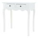 Ozdobný toaletní stolek, který bude elegantním doplňkem vašich ložnic. Ozdobný barokní styl se hodí do tradičnější zařízených domácností nebo do domácností, které podobné barokní prvky obsahují. Stolek má dvě zásuvky s ozdobnými úchyty. Stolek stojí na vysokých vyřezávaných nožičkách. Barevné provedení stolku je bílá.