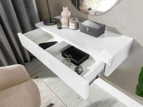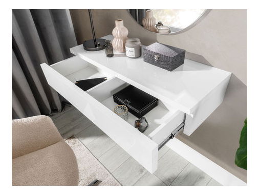 ZobrazitToaletní stolek Wepanda se zrcadlem je jedinečný kus nábytku, který spojuje funkčnost s estetikou. Byl navržen tak, aby vytvořil praktické a stylové místo pro každodenní péči. Ústředním prvkem toaletního stolku je kulaté, krásně vyrobené zrcadlo, které dokonale osvětlí prostor a umožní pohodlné nanášení make-upu nebo péče o pleť. Zrcadlo také dodává pocit prostornosti a prosvětluje interiér. Toaletní stolek nabízí také dostatek úložného prostoru. Zásuvka umožňuje organizovat kosmetiku, šperky a další potřebné předměty. Díky tomu je vše vždy po ruce a kosmetická deska zůstane čistá a uklizená.