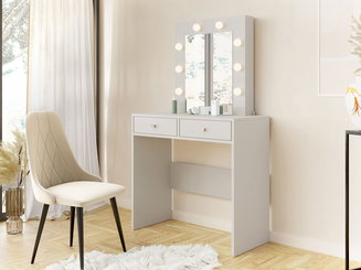 K toaletnímu stolku patří také židle. Je na vás, jaký typ vám vyhovuje – jestli vám stačí taburetka, designové čalouněné křeslo nebo židle s opěrkou. U nás naleznete také hotové sestavy, včetně židle. Nesporně nejdůležitější součástí toaletního stolku je velké zrcadlo. Bez něj by nebyl stolek kompletní. Z široké nabídky si můžete vybrat různé velikosti. Větší zrcadla jsou praktičtější, jelikož v nich můžete zkontrolovat i svůj celkový outfit. Doporučujeme jej doplnit i menšími zrcadly po stranách. S tím velmi úzce souvisí i osvětlení. Je rozdíl nanášet si make-up v tlumeném koupelnovém osvětlení a na přirozeném světle, kde vidíte všechny nedostatky. Pokud máte možnost, umístěte stůl k oknu a přidejte ještě stolní lampu. Jelikož to má být malý kousek ráje, dopřejte si na stolek čerstvé květiny, fotku nebo jinou dekoraci, která vám vždy vykouzlí úsměv na tváři.