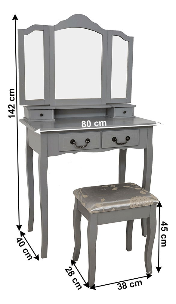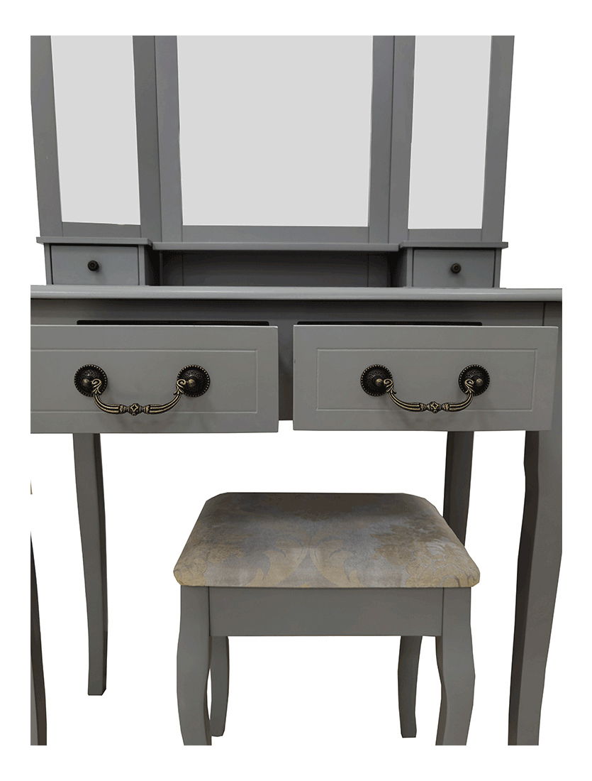 Toaletný stolík s taburetkou Galway NEW (šedá + stříbrná)