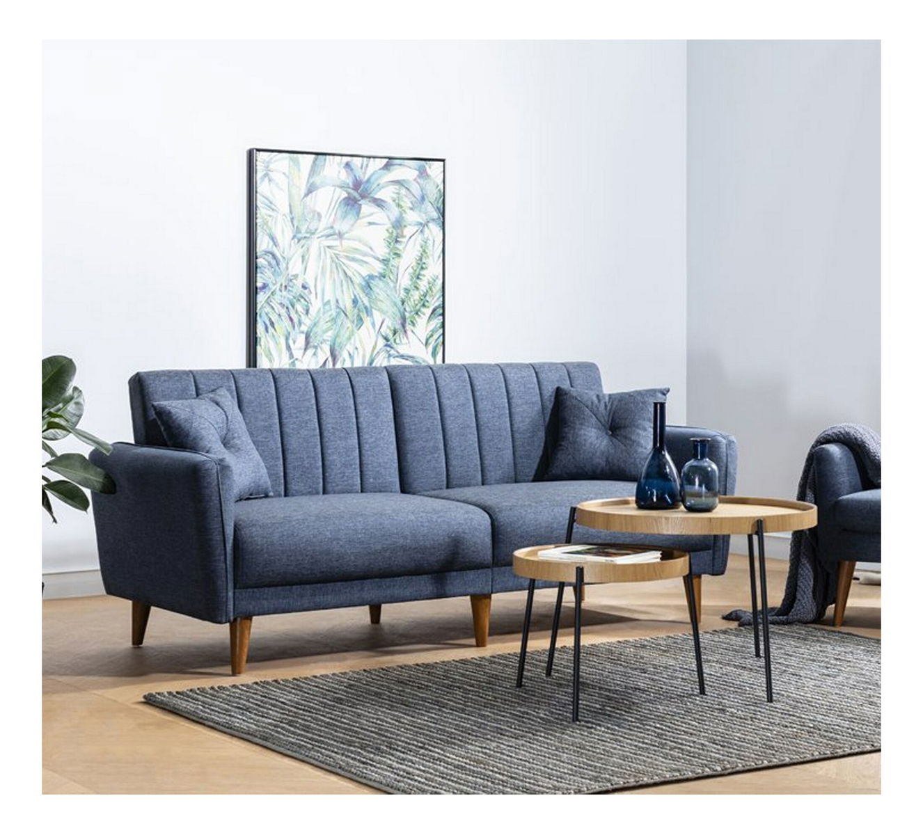 ZobrazitTřísedačka - Adriene (Tmavá modrá) je skvělým doplňkem do vašeho interiéru. S výškou 85 cm, šířkou 210 cm a hloubkou 82 cm nabízí dostatek místa k sezení pro vaši rodinu a hosty. Tmavá modrá barva přidává elegantní a stylový vzhled do vašeho obývacího prostoru. Třísedačka má pohodlná sedadla a opěrky, které vám umožní relaxovat a odpočinout si po náročném dni. S kvalitním zpracováním a trvanlivou konstrukcí je tato trojsedačka skvělou volbou pro váš domov.