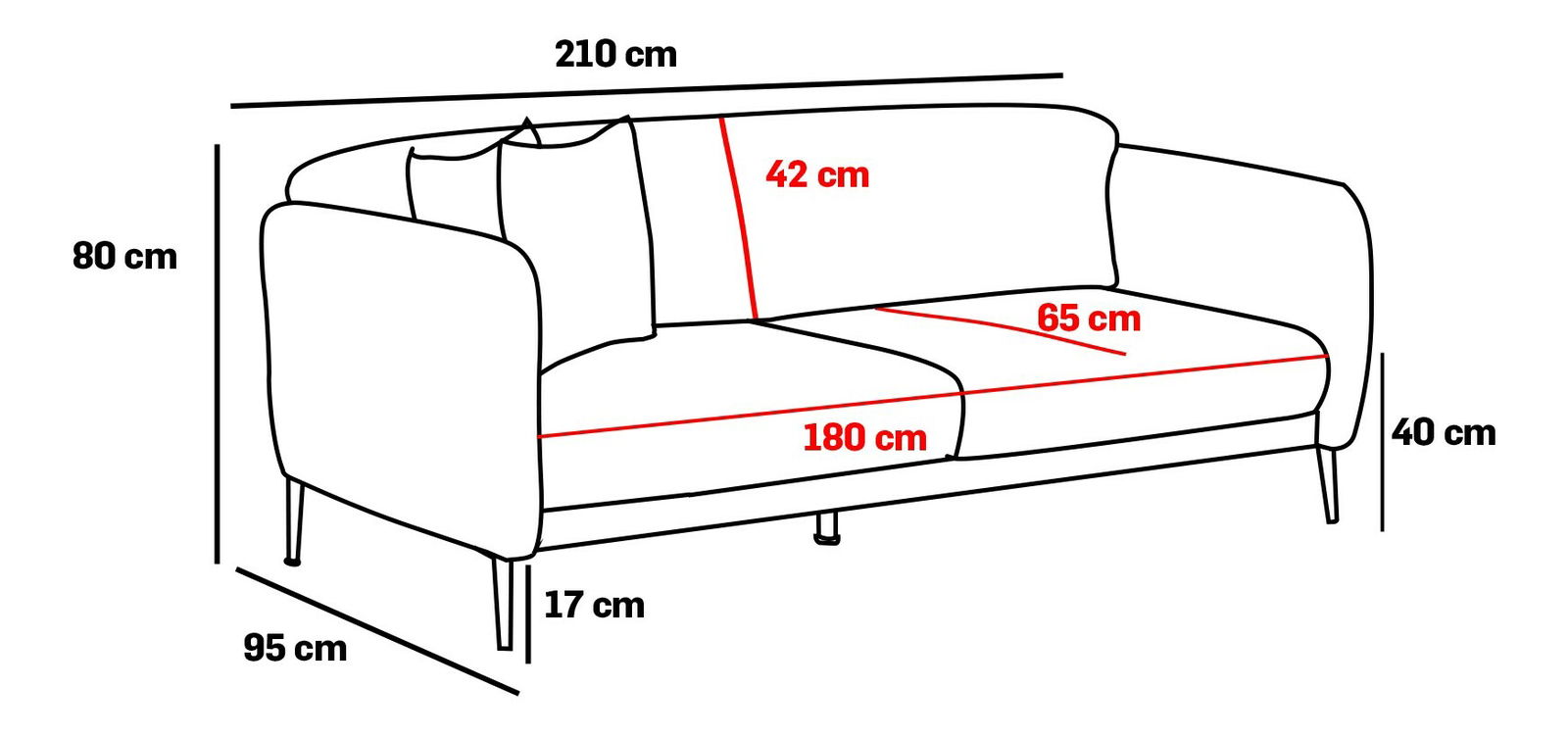 šířka: 210 cm výška: 80 cm hloubka: 95 cm