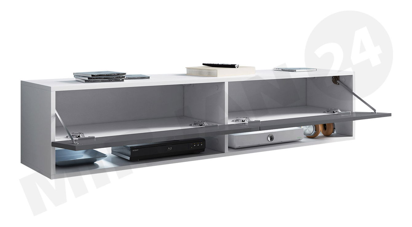 ZobrazitTV skříňka Aldesia je moderní návrh do menšího obývacího pokoje, který je určen k zavěšení na zeď. TV skříňka má dvě uzavřené skříňky a dvě otevřené police, na které můžete umístit například televizor. TV skříňka Aldesia je vhodná zejména pro moderní zařízení.