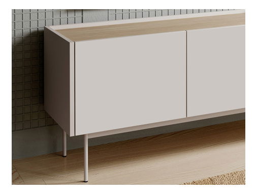 ZobrazitTV skříňka Corado CRTV144 do obývacího pokoje zaujme minimalistickým, ale zároveň originálním designem. Jedná se o dokonalé řešení pro vyplnění prostoru pod televizorem. Tři prostorné přihrádky umožňují uložit množství příslušenství, elektronických zařízení a jiných předmětů. Velká deska s vyčnívajícími čely nabízí mnoho možností uspořádání. Můžete na ni umístit fotorámečky, květiny nebo suvenýry z cest. TV skříňka na nožičkách působí dojmem svěžesti a lehkosti. Díky subtilním nožičkám snadno udržíte čistotu pod nábytkem. TV skříňka nemá žádné úchytky, což jí dodává na třídě a eleganci. Dveře se otevírají pomocí prodloužených čel.