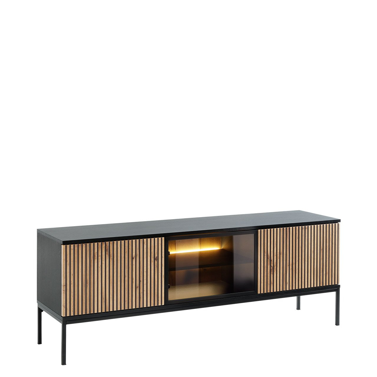 TV skříňka Dernas RTV154 (černý grafit + dub wotan) (se žlutým LED osvětlením)