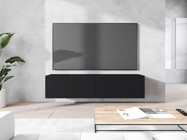 TV skříňka Dlana 140 MDF (černý grafit + rybí kost černá)
