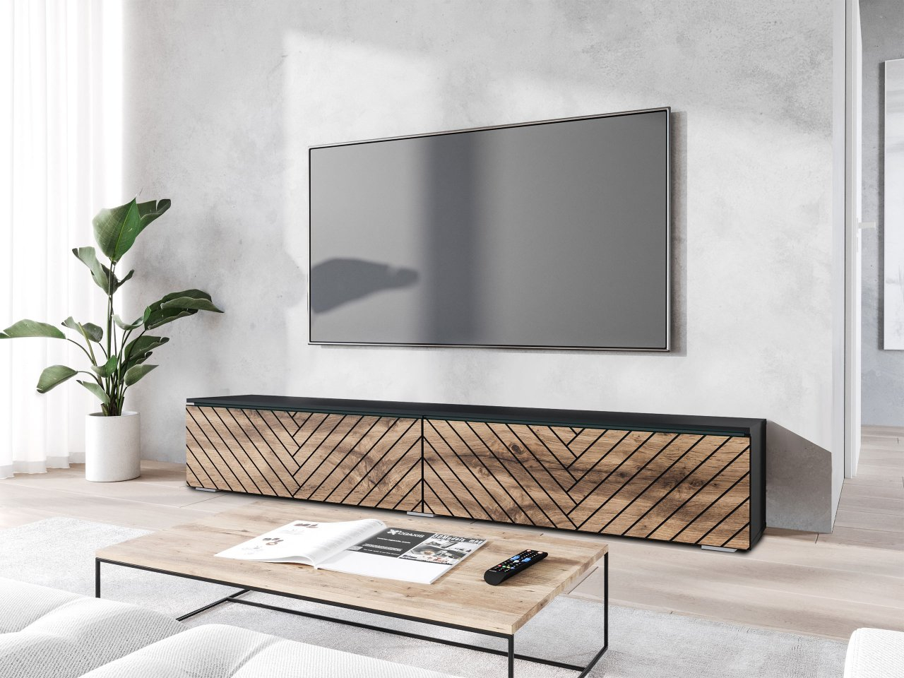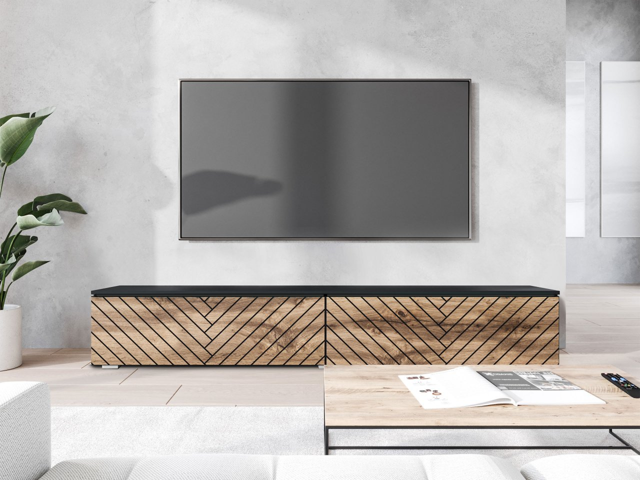 TV skříňka Dlana 180 MDF (černý grafit + dub wotan)