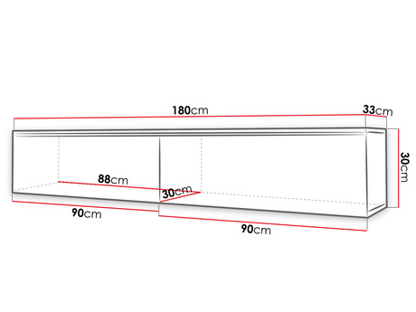 TV skříňka Dlana180 MDF stylově doplní prostor vašeho obývacího pokoje. Můžete si ji dokonale přizpůsobit svým preferencím aranžování. Můžete ji položit na zem nebo zavěsit na zeď. Skříňka nemá žádné úchytky, což jí dodává minimalistický vzhled. Prostorný vnitřek TV skříňky usnadňuje uložení různých předmětů, od ploten, přes kabely, až po knihy. Všechny potřebné věci si zde najdou své místo a v obýváku bude pořádek.