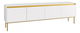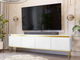 Hledáte interiérový designový prvek, který obohatí jeho estetiku? Vyberte si moderní TV skříňku Gelean 4D! Jednoduchý tvar dokonale ladí se zlatými detaily. Vysoké nohy zdůrazňují elegantní styl TV skříňky a prostorný interiér zvyšuje funkčnost obývacího pokoje. TV skříňka je vybavena dvěma přihrádkami, které jsou dokonalým prostorem pro uložení všech potřebných věcí.