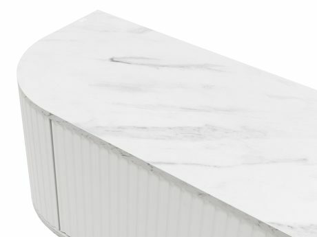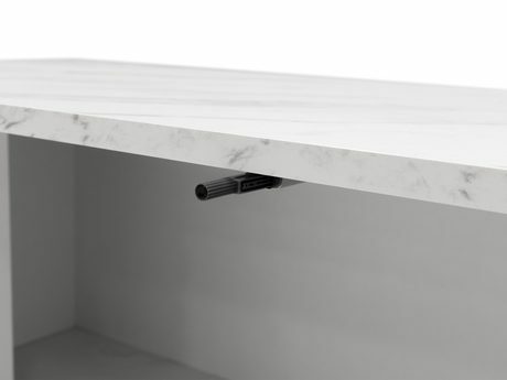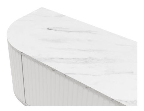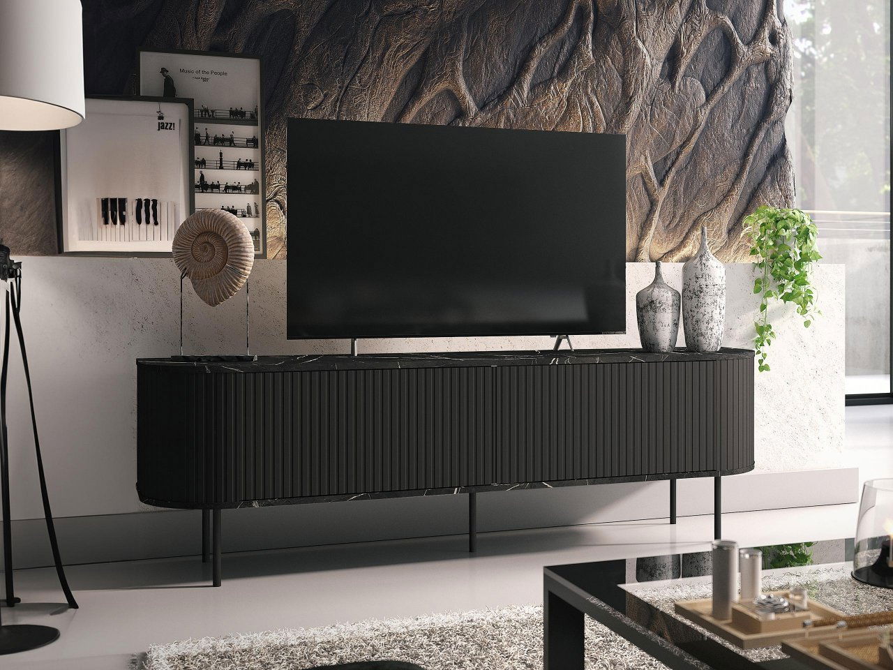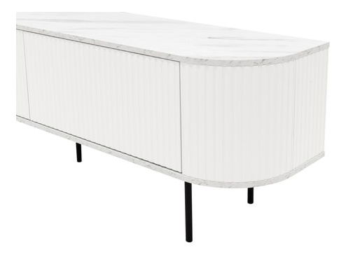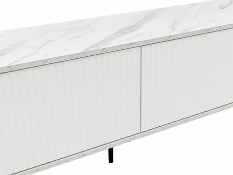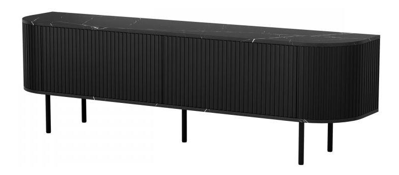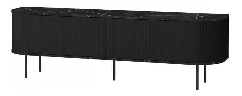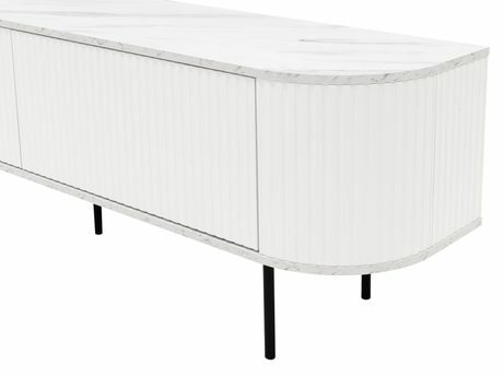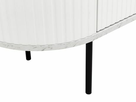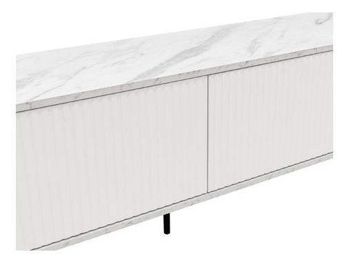 Hledáte módní TV skříňku do obývacího pokoje? Nerakat je hit! Jedinečný, módní styl chytí za srdce především milovníky moderního designu. TV skříňka na nožičkách skvěle doplní váš prostor pod televizí, dodá mu třídu, eleganci a funkčnost. Model vyniká zaoblenými stranami, frézovanými předními částmi a detaily s mramorovým vzorem. TV skříňka nabízí také dostatek úložného prostoru. Lehce do ní vejdete spoustu různých předmětů.