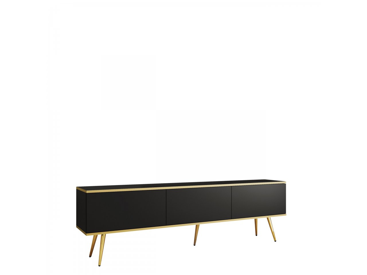 ZobrazitRozhodněte se pro eleganci ve svém obýváku a vyberte si TV skříňku Onasewo I! Vyzařuje eleganci a moderní styl. Střídmá barevnost předních ploch se skvěle kombinuje se zlatými prvky. Vysoké kovové nožičky umožňují udržet pořádek pod nábytkem a navíc podpírají celou konstrukci. Vnitřek TV skříňky do obývacího pokoje ukrývá tři prostorné úložné prostory, které podporují rozdělení zařízení potřebného pro televizní prostor. Své místo zde najdou kabely, dálkové ovladače, disky a další elektronika. Čela se snadno otevírají díky systému „push to open“.