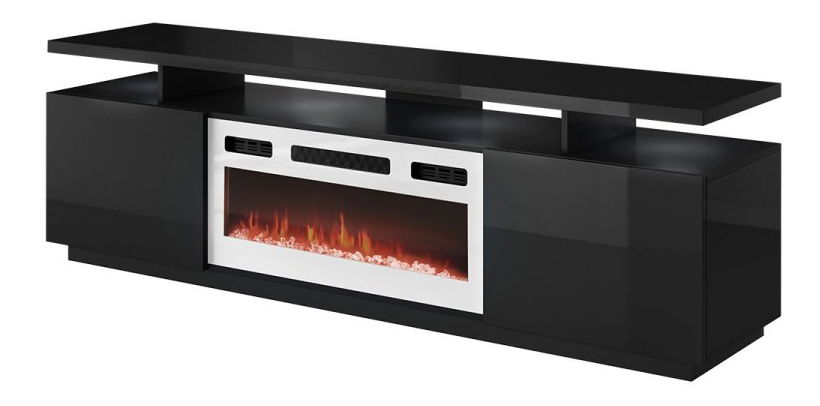 TV skříňka s krbem Anaceta (bílá + černá + lesk černý) (s LED osvětlením)