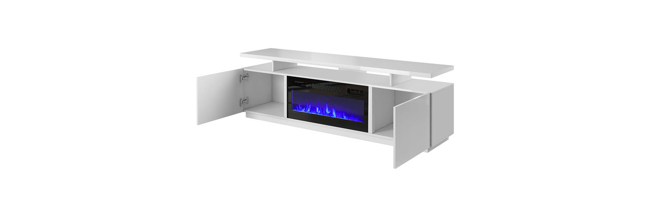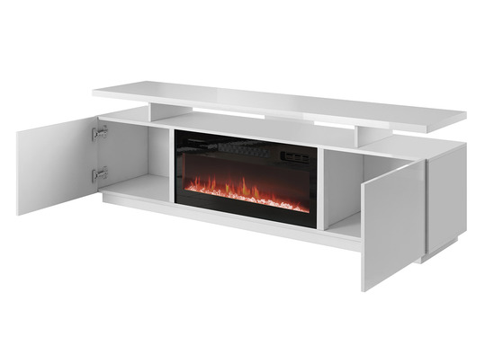 TV skříňka s krbem Anaceta (bílá + lesk bílý)