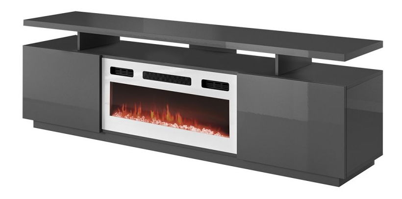 TV skříňka s krbem Anaceta (bílá + lesk grafit)