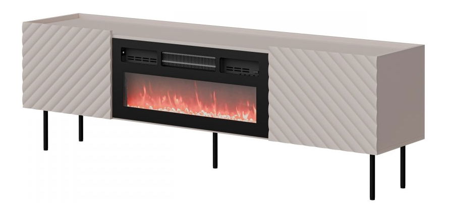 TV skříňka s krbem Grotzi 180 2D (kašmír + černá)