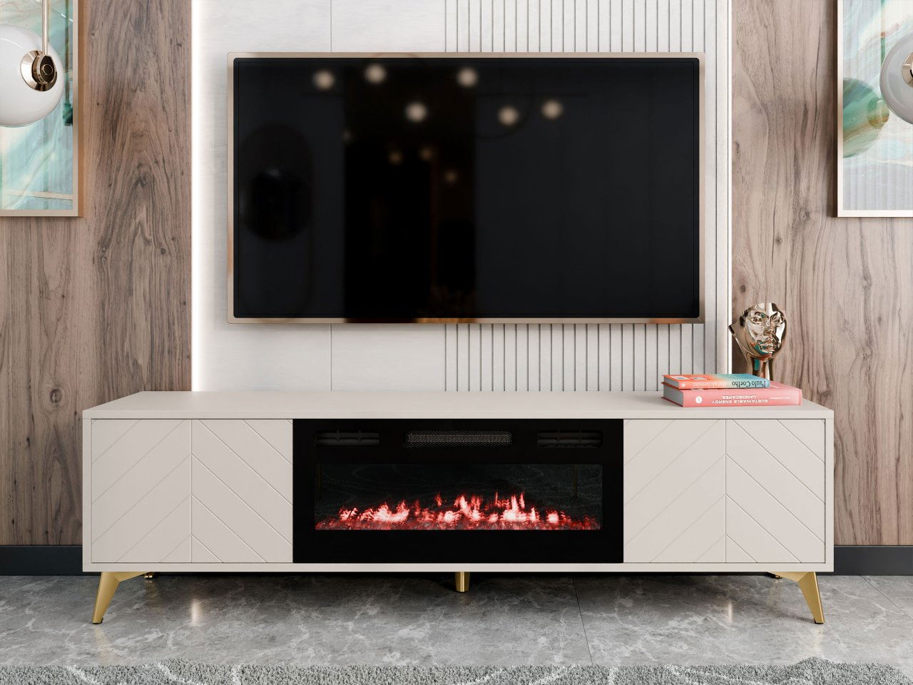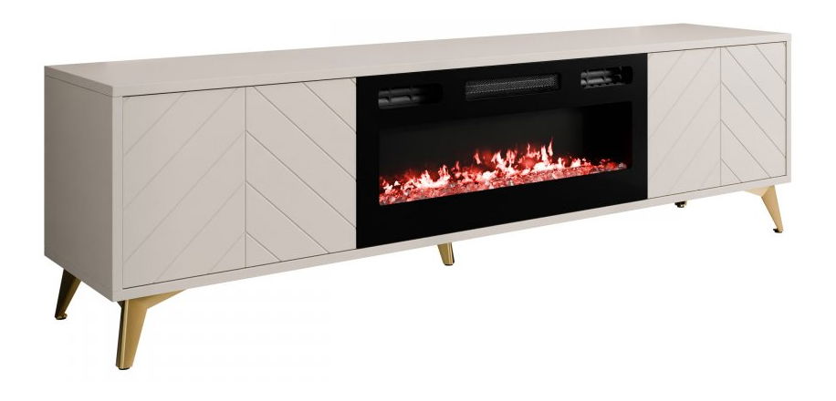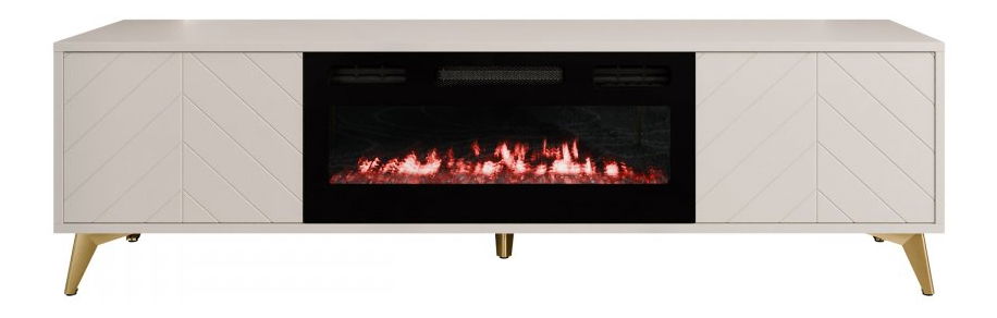 TV skříňka s krbem Semprum 2D EF (pískově béžová + zlatá)
