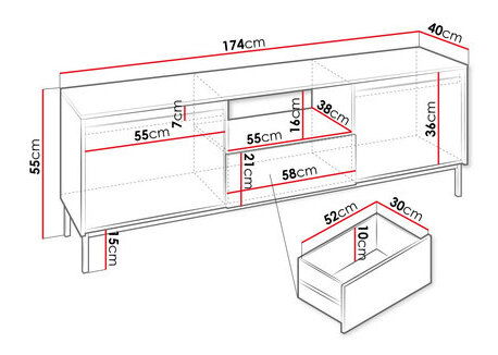 Multimediální zařízení nebo dekorativní doplňky, veškeré toto domácí vybavení lze umístit do skříňky TV Somkera 2K1SZ. Její interiér nabízí prostorné police i praktickou zásuvku. Tyto prostory jsou ideální pro uložení disků, knih nebo jiného příslušenství. Kromě funkčnosti zaujme prezentovaná TV skříňka také svým krásným vzhledem. Podmanivá čela různých textur vytvářejí zajímavý celek. Celý TV skříňky doplňuje kovový rám, který jí dodává jemnou lehkost.