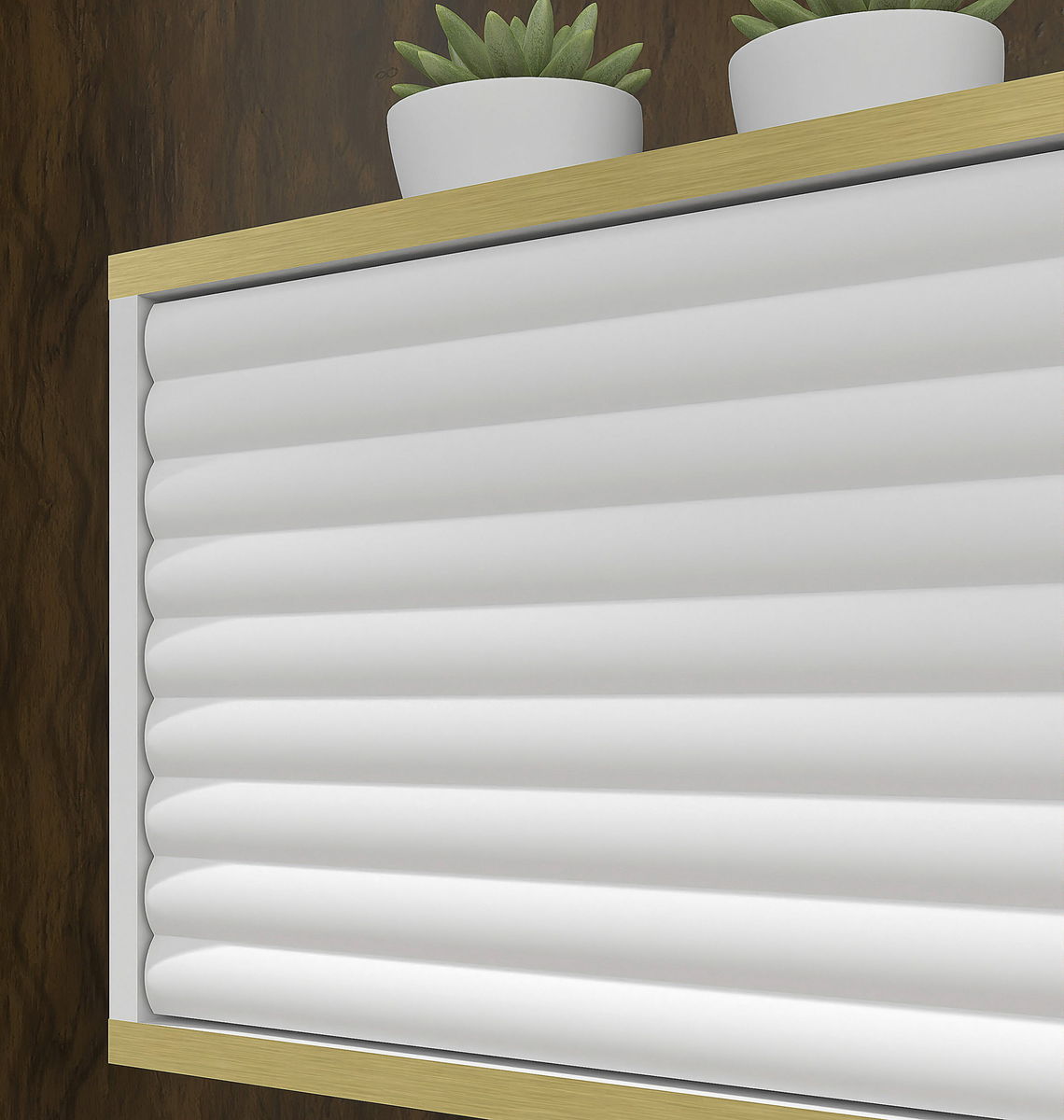 ZobrazitTV skříňka je esteticky navržen kus nábytku vhodný do obývacího pokoje, ložnice a dětského pokoje. V reakci na nejnovější trendy se vyznačuje frézovanými předními stranami s 3D efektem. Klasická barevná paleta se harmonicky pojí se zlatými akcenty v podobě horizontálních linií. Možnost montáže skříňky na zeď dodává zařízení lehkost a moderní charakter. Stolek také nabízí funkčnost a pohodlí uživatele díky systému PUSH TO OPEN. Dva prostory lze použít pro uložení elektroniky, knih a memorabilií.
