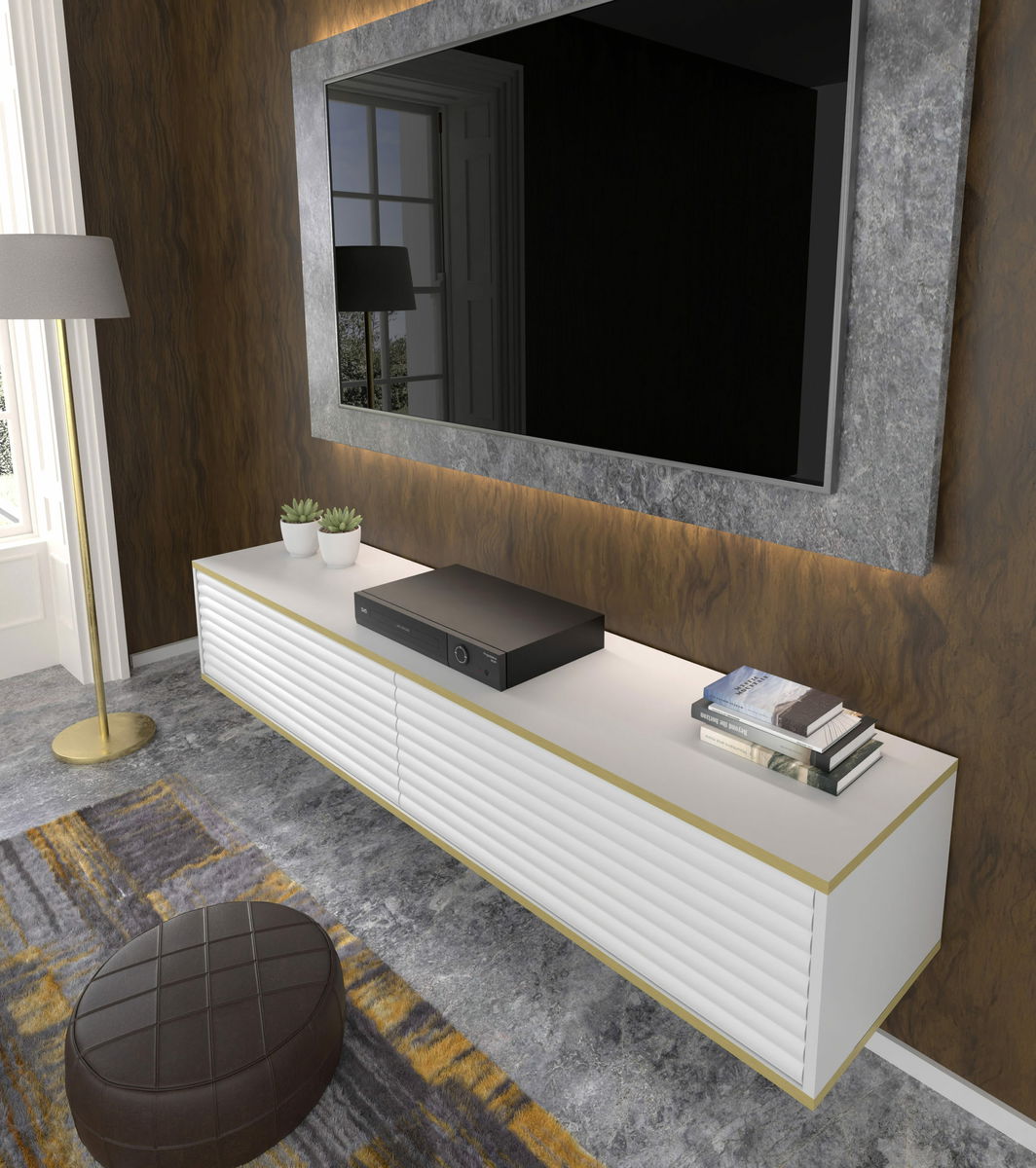 TV skříňka/stolek 180 Subba (bílá + zlatá)