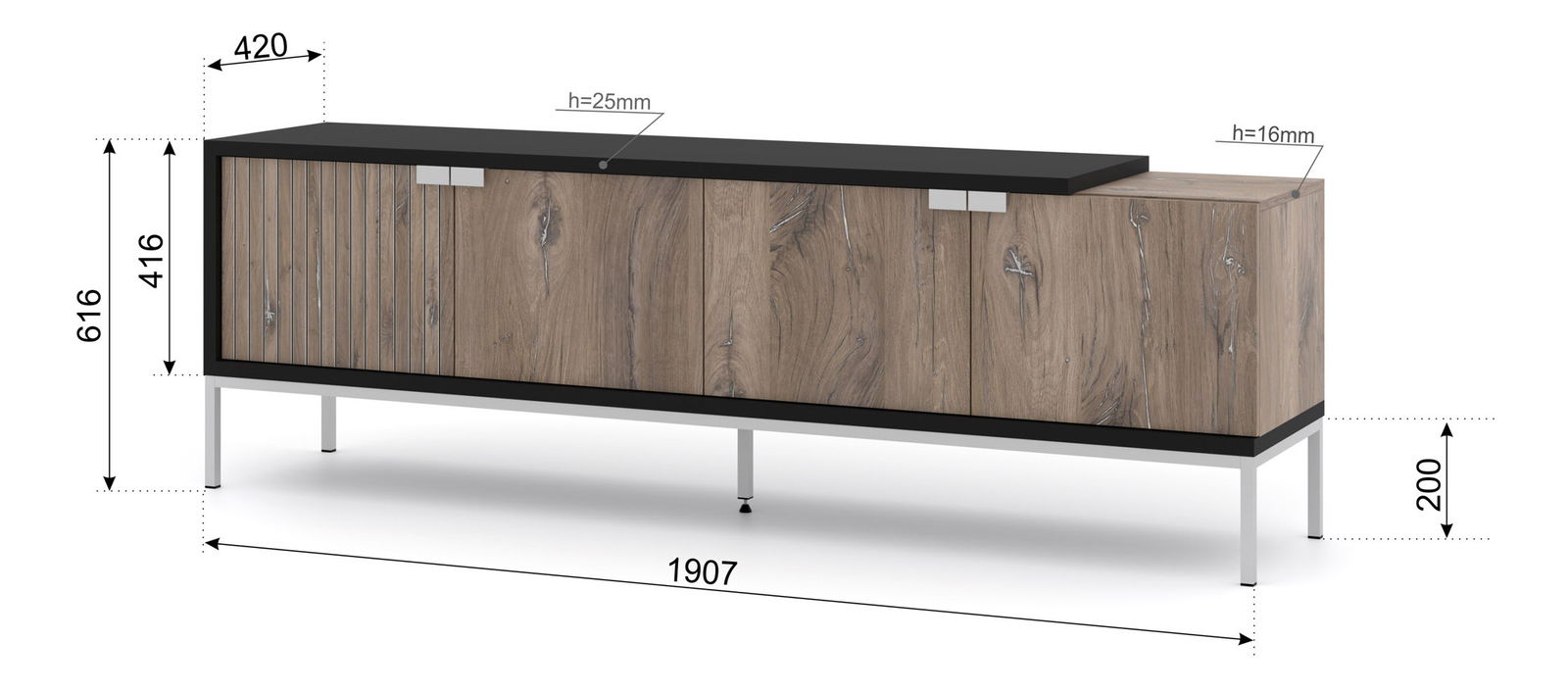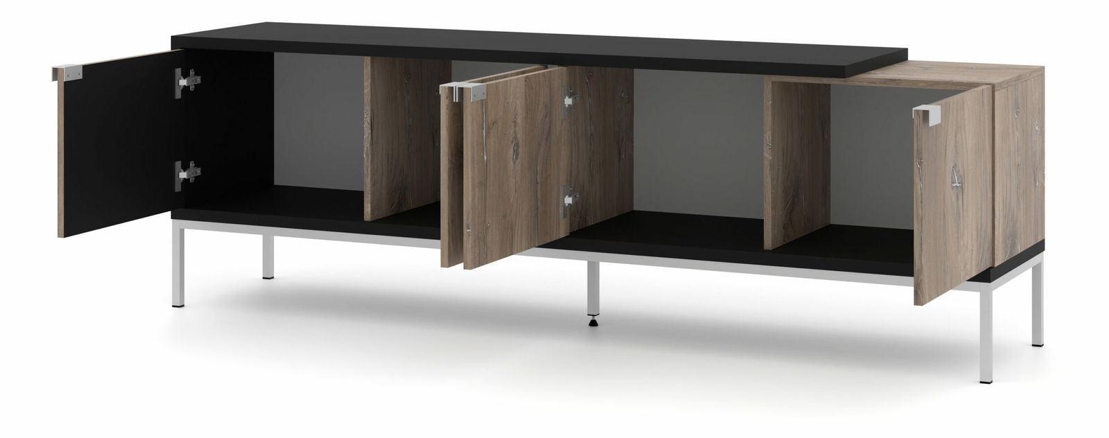 TV skříňka/stolek 200 4D Toleo (dub flasgstaff + černá + stříbrná)