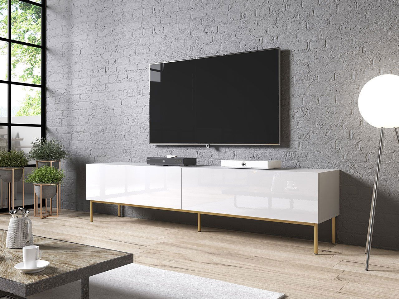 TV skříňka/stolek 200 s kovovým rámem Kody (Bílý + Bílý lesk + Zlatá)