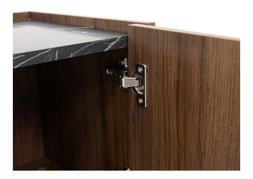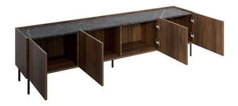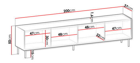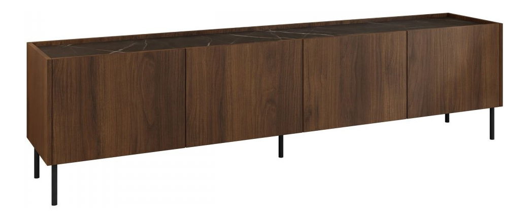 TV skříňka je ideální volbou pro ty, kteří hledají pohodlí a styl. Pokud potřebujete spoustu místa pro úložné a multimediální vybavení, doporučujeme aranžmá doplnit moderní TV skříňkou Antovei 200 4D. Tento kus nábytku vám poskytne dostatek prostoru pro odkládání a vystavení dekorací. Stane se však také dekorací interiéru, nabídne zajímavou barevnou kombinaci. Zajímavý vzhled zahrnuje fronty v odstínu tmavého dřeva a desku s povrchem podobným mramoru. Další výhodou TV skříňky je její vyšší poloha. Prezentovaný model má černé kovové nohy, které jej odlehčují a umožňují snadné čištění povrchu pod nábytkem. Rozměry: šířka: 200 cm, výška: 50 cm, hloubka: 37 cm Provedení: korpus a fronty: 16 mm silná laminovaná deska, ABS hrana, nohy: černý kov, bez úchytek (přední části mírně vyčnívají nad desku), panty s tichým zavíráním: 3 kg