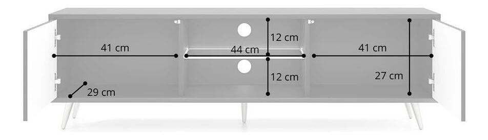 ZobrazitHledáte nábytek, který vám pomůže zařídit jedinečný prostor jako z časopisu o interiérovém designu? S TV skříňkou rychle a jednoduše změníte svůj obývací pokoj k nepoznání! TV skříňka má jedinečný design a funkčnost v jednom. Jednoduchá forma na zlatých, úzkých nožičkách je obohacena o módní lamely vpředu, díky čemuž působí celek velmi styl. Úspěšně zapadne do interiérů zařízených v moderním, minimalistickém a industriálním stylu, kde se nepochybně stane ozdobou místnosti. Výhodou je velká kapacita uzavřených polic, které vám umožní skrýt soukromé věci před zraky hostů. Všechny doplňkové kabely pro zařízení, hry ke konzole a nabíječky si tam snadno najdou své místo a udrží tak v obýváku harmonický řád. Dvě otevřené police budou ideálním místem pro dekodér, konzoli nebo dekorativní krabičku s drobnostmi. Celý je završen LED osvětlením, které ve večerních hodinách vytvoří jedinečnou a romantickou atmosféru. Detaily produktu: korpus vyrobený - 16mm laminovaná deska, která je odolná vůči vlhkosti a poškrábání, zajišťuje dlouhé používání, přední část vyrobena - MDF deska s PVC fólií, nohy vyrobeny - černá ocel, která zajišťuje stabilitu konstrukce, police s LED je vyrobena ze skla , hrany nábytku zpevněné ABS hranou, nábytek lze sundat svépomocí, barva: dub wotan/černá.
