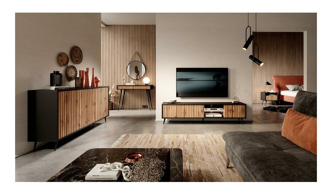 TV skříňka/stolek Biel 175 (černá + dub wotan)