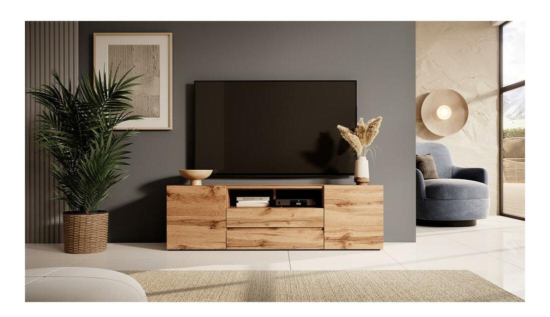 ZobrazitHledáte všestranný TV stolek, který doplní váš minimalistický obývací pokoj? Prostor se zmenšuje a elektronika stále roste? Nebojte se – s TV skříňkou se s tímto problémem můžete navždy rozloučit! V jednoduchosti je síla. Struktura, řídká na dekorace, je podepřena malými, ale silnými plastovými nožičkami. Barevné provedení dub wotan v matném provedení vnese závan svěžesti a dodá místnosti přírodní charakter, který okouzlí každého. je kus nábytku určený pro moderní technologie, jelikož v jeho interiéru je dostatek prostoru pro elektronická zařízení. Velmi dobře známe bolest, když se ukáže, že rozměry naší staré TV skříňky nám neumožňují umístit veškeré příslušenství potřebné pro každodenní život. Velkou výhodou a je její široké a odolné tělo, které má kromě dvou otevřených výklenků také dvě uzavřené boční skříňky, perfektní pro odkládání věcí, které nechceme vystavovat. Střední část, otevíraná nahoru a dolů dvojicí dvířek, ukrývá jedno vybrání rozdělené lamelou. Jak se na moderní skříňku patří, má standardně bílé LED osvětlení, které pěkně zvýrazní její interiér. S kabinetem RTV se dnes rodinné večery stanou společnou oslavou pěkných chvil! Pozor! Nábytek má bílé osvětlení - nespoléhejte se prosím na fotografie!