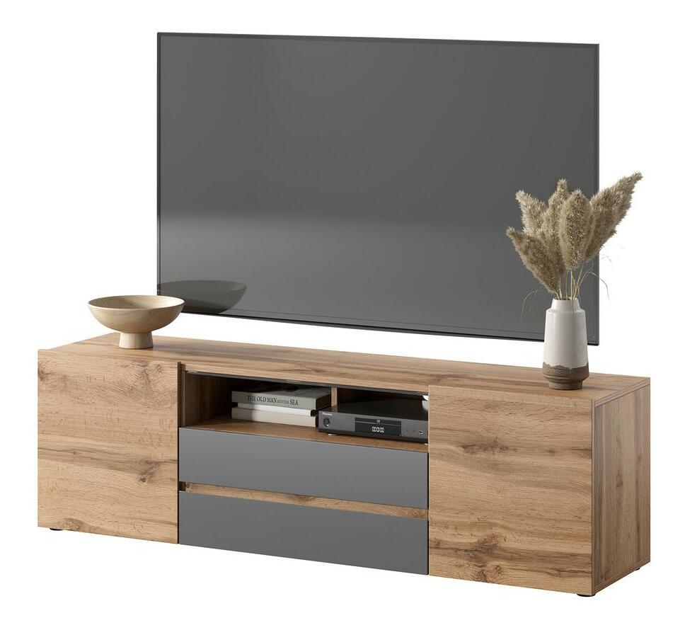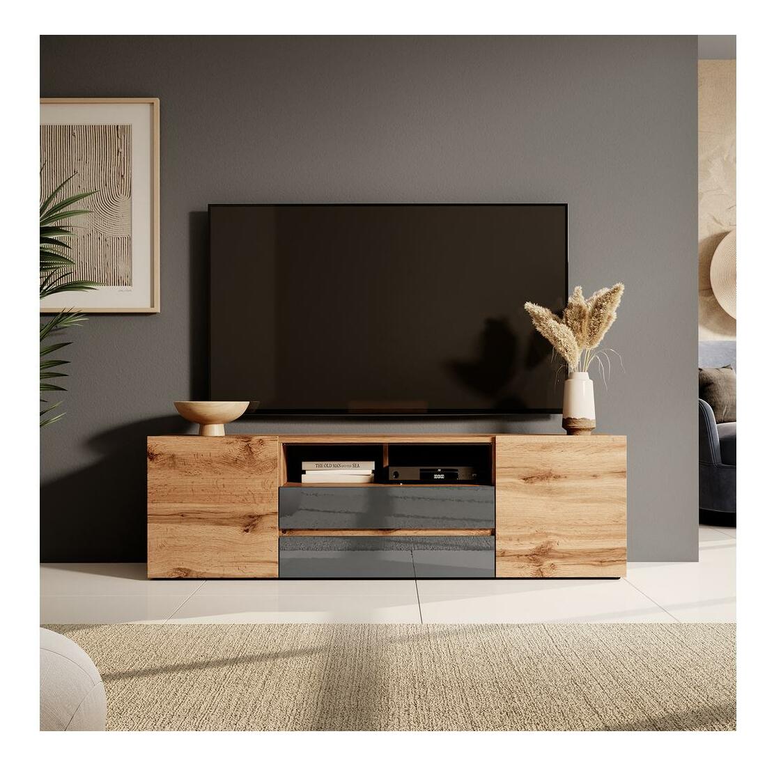 TV skříňka/stolek Boss (s osvětlením) (dub wotan + šedá)
