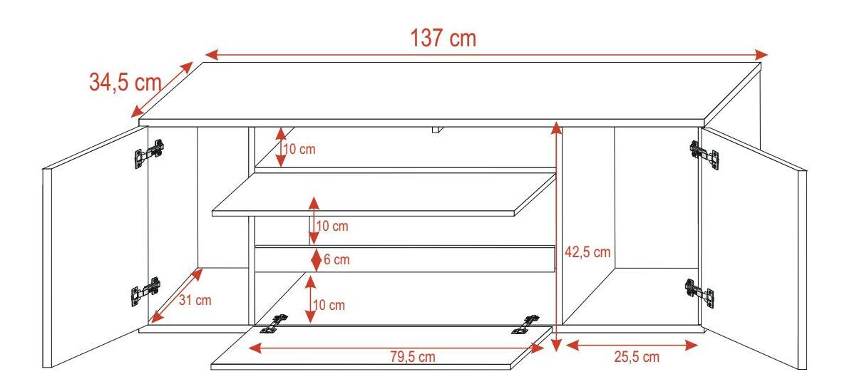 ZobrazitHledáte všestranný TV stolek, který doplní váš minimalistický obývací pokoj? Prostor se zmenšuje a elektronika stále roste? Nebojte se – s TV skříňkou se s tímto problémem můžete navždy rozloučit! V jednoduchosti je síla. Struktura, řídká na dekorace, je podepřena malými, ale silnými plastovými nožičkami. Přední strana skříňky je lesklá laminovaná deska, která se neuvěřitelně leskne, když si ve svém obývacím pokoji nastavíte vhodné osvětlení. Korpus v barvě dub Wotan v matném provedení vnese závan svěžesti a dodá místnosti přírodní charakter, který okouzlí každého. Tato barevná kombinace učiní váš obývací pokoj originálnější. je kus nábytku určený pro moderní technologie, jelikož v jeho interiéru je dostatek prostoru pro elektronická zařízení. Velmi dobře známe bolest, když se ukáže, že rozměry naší staré TV skříňky nám neumožňují umístit veškeré příslušenství potřebné pro každodenní život. Velkou výhodou a je její široké a odolné tělo, které má kromě dvou otevřených výklenků také dvě uzavřené boční skříňky, perfektní pro odkládání věcí, které nechceme vystavovat. Střední část, otevíraná nahoru a dolů dvojicí dvířek, ukrývá jedno vybrání rozdělené lamelou. Jak se na moderní skříňku patří, má standardně bílé LED osvětlení, které pěkně zvýrazní její interiér. Pozor! Nábytek má bílé osvětlení - nespoléhejte se prosím na fotografie! S kabinetem RTV se dnes rodinné večery stanou společnou oslavou pěkných chvil!
