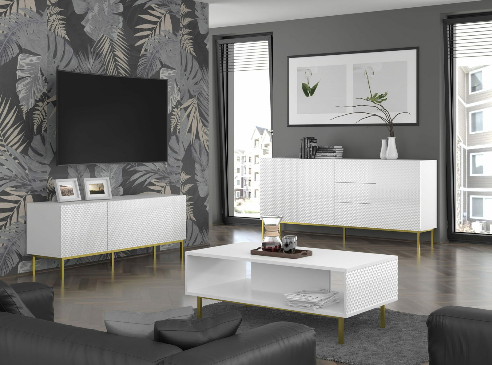 ZobrazitNábytek z prezentované kolekce Rowanna se vyznačuje elegancí a jedinečným vzhledem. Bude vhodný pro zařízení v moderním, italském a minimalistickém stylu. Jednoduchost tvarů a bezúchytkové přední lišty dokonale ladí s decentními řezanými hranami. Tyto neobvyklé dekorace změní interiér obývacího pokoje nebo jídelny a přinesou velkolepý design, který splňuje nejnovější trendy. Kovový rám podpírající korpus zajišťuje stabilitu a dodává osobitý charakter. Série Ravenna se vyznačuje nejen stylovým designem, ale také vysokou kvalitou, funkčností a snadným používáním. Vybavení nábytku systémem „push to open“ zaručuje pohodlné otevírání. TV skříňka se dokonale hodí do zařízení obývacího pokoje a umožní funkční úložné prostory.“