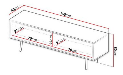 ZobrazitTV skříňka/stolek je ideální volbou pro ty, kteří hledají pohodlí a styl. Rozměry: šířka: 150 cm, výška: 50 cm, hloubka: 40 cm Provedení: korpus: dřevotříska tloušťka 16/22 mm, čela: 16 mm silná dřevotříska, ABS hrana, zadní část nábytku je vyrobena z HDF desky tloušťky 3 mm, nohy: OPEN", rychlomontážní panty s tichým zavíráním, dvířka se otevírají výklopem dolů. Záruka: 24 měsíců
