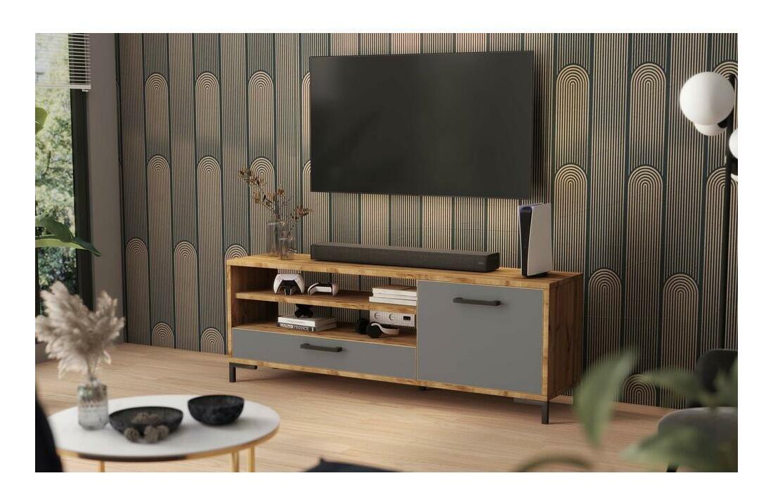 ZobrazitBolí vás hlava z pomyšlení na váš multimediální koutek? S kolekcí TV skříněk budou všechny vaše problémy zapomenuty! TV skříňka nesmí chybět v každém bytě. Díky svému geometrickému tvaru s bezvadným vzhledem a zajímavým barvám – povedená kombinace dekoru dub Lancaster s matnou šedou – se tento kus nábytku skvěle hodí do obývacího pokoje, ložnice či herny, kde se stane povinnou součástí. módní uspořádání. Skvěle se proto bude hodit jak do modernistické kompozice, jejíž specifickou atmosféru pomůže zdůraznit, tak do skandinávského designu, kde pěkně zapadne do klidné atmosféry. Dvě otevřené přihrádky a přihrádky uzavřené dvířky vám umožní správně uspořádat elektronická zařízení a jejich drobnosti. V místnosti tak zůstane pořádek a vy budete mít rychlý a snadný přístup k požadovanému předmětu. Detaily produktu: přední části a korpus jsou vyrobeny z 16 mm laminované desky, díky čemuž jsou odolné a vypadají hezky, plastové nožičky jsou stabilní a nepoškrábají povrch podlahy, hrany chráněny 0,5 mm silnou ABS hranou vykazují zvýšenou odolnost, bez zadní stěny v komory umožňují snadný průchod kabelů, barva: dub lancaster/matná šedá, nábytek pro svépomocnou montáž.