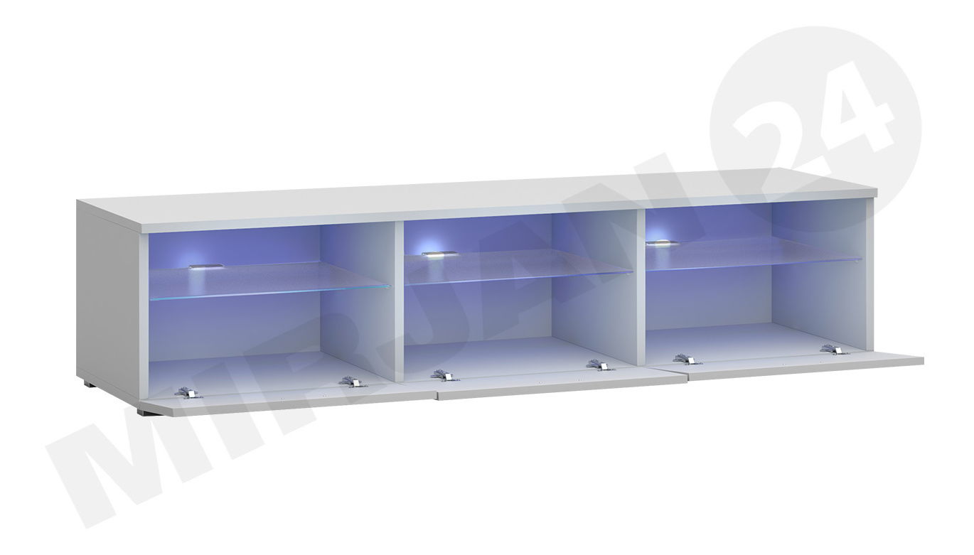 ZobrazitTV skříňka je ideální volbou pro ty, kteří hledají pohodlí a styl. Rozměry: šířka: 150 cm výška: 34,8 cm hloubka: 45,5 cm Barvy: možnost výběru barev zde Vyrobeno: dřevotřísková deska laminovaná, korpus nábytku je matný, dvířka jsou lesklé, police ve skříňce jsou podsvícené LED osvětlením v modré barvě, dvířka Záruční doba: 24 měsíců