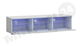 police ve skříňce jsou podsvícené LED osvětlením v modré barvě,
