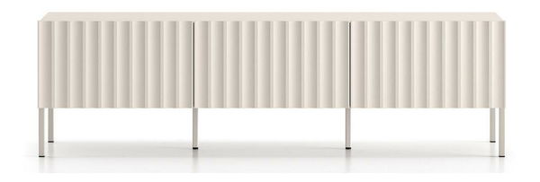 Hledáte jedinečný, moderní a zároveň funkční nábytek do vašeho interiéru? Kolekce splní všechna vaše očekávání Skříňka pod TV s jedinečným designem dokonale zapadne do moderních a minimalistických interiérů. Světlá béžová barva dodává skříňce jemný šarm, který se perfektně hodí k většině aranžmá. Celá kolekce se vyznačuje rafinovaným detailem v podobě drážkovaných předních dílů, které dodávají každé místnosti jedinečný vzhled. Je navržen s ohledem na funkčnost a má tři prostorné police, do kterých můžete snadno umístit různé druhy předmětů v závislosti na vašich potřebách. Položením korpusu na stabilní kvé nohy v barvě nábytku to celé působí lehce a velmi styl. Kolekce je nejen praktickým úložným řešením, ale také designovým prvkem, který zdůrazní individuální styl každé místnosti. Nečekejte a představte svému interiéru jedinečný charakter již dnes. barva korpusu, čela vyčnívající 7 mm nad desku, hrany chráněné proti mechanickému poškození melaninem, střední/podpěrné nožičky s funkcí výškového nastavení, zadní stěna z bílého HDF, barva: světle béžová.