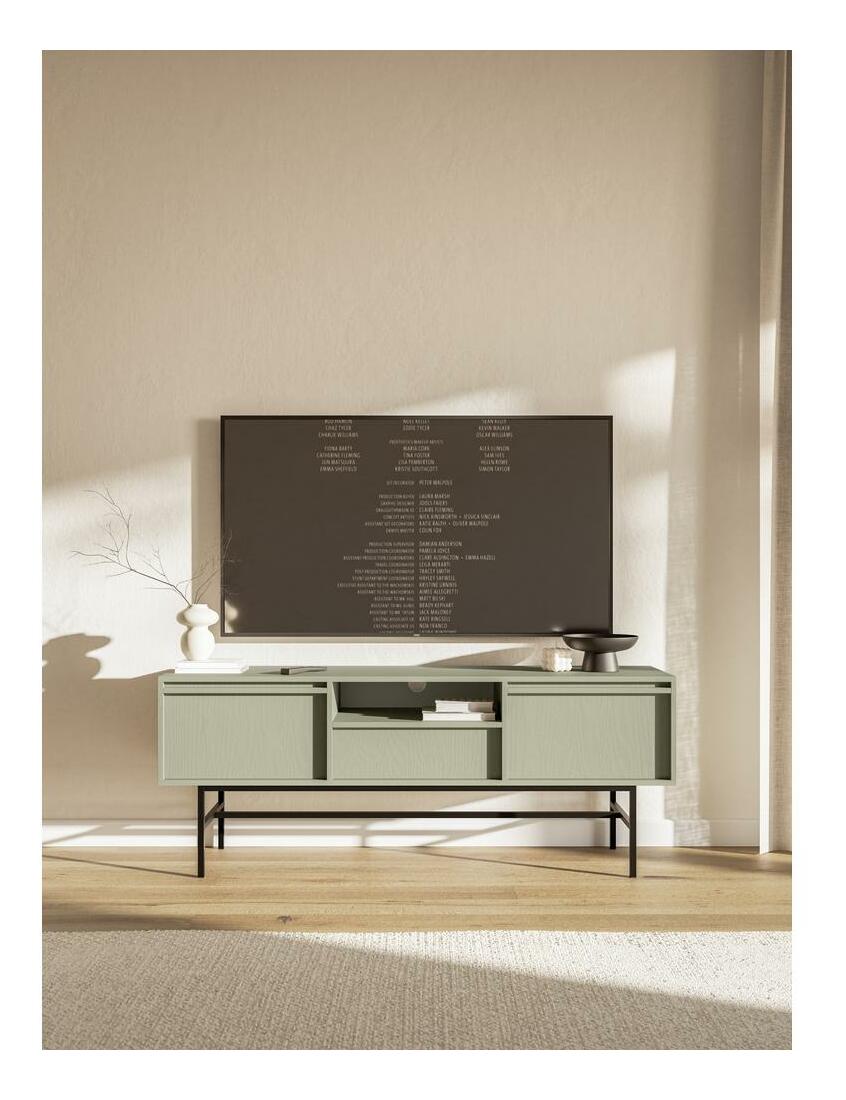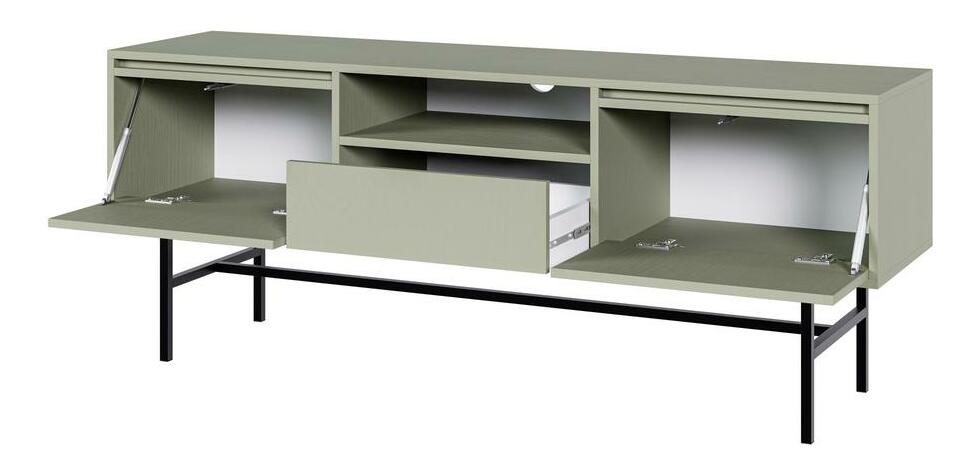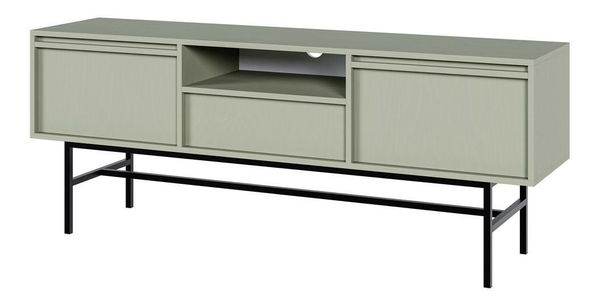 ZobrazitHledáte alternativu k módním lamelám? Oceňujete minimalismus ve svém interiéru? Pokud ano, určitě se vám bude líbit kolekce nábytku TV skříňka je nezbytným prvkem kolekce. Vyznačuje se jednoduchým tvarem, umístěným na ocelovém podstavci, který zajišťuje stabilitu konstrukce. Díky vysokým úzkým nohám snadno udržíte čistotu pod skříňkou i v místnosti, zvláště pokud máte úklidového robota. Nábytek je vybaven dvěma uzavřenými skříňkami a praktickou zásuvkou, do které se vejde veškeré příslušenství k TV i otevřenou policí - ideální pro dekodér nebo konzolu Detaily produktu: korpus: 16 mm laminovaná deska se strukturou dřeva (U19017 WP Eukaliptus) , podstavec: ocel s práškovým nástřikem, hrany chráněné 0,8 cm ABS hranou, která zaručuje zpevnění proti mechanickému poškození, skříňka vybavena systémem push to open, nemá systém tichého zavírání, otevřená police obsahuje praktický otvor pro kabely.