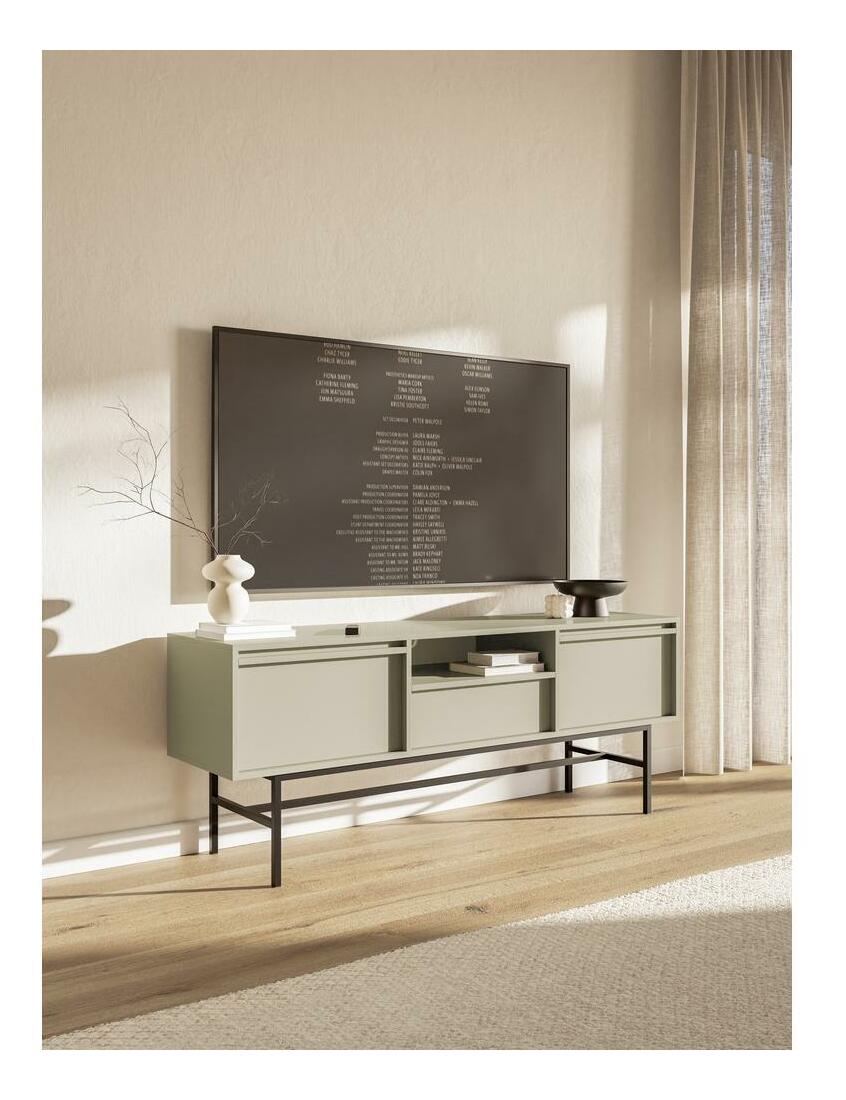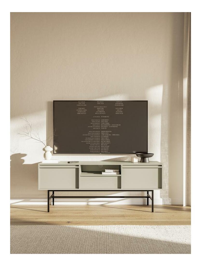 ZobrazitHledáte alternativu k módním lamelám? Oceňujete minimalismus ve svém interiéru? Pokud ano, určitě se vám bude líbit kolekce nábytku TV skříňka je nezbytným prvkem kolekce. Vyznačuje se jednoduchým tvarem, umístěným na ocelovém podstavci, který zajišťuje stabilitu konstrukce. Díky vysokým úzkým nohám snadno udržíte čistotu pod skříňkou i v místnosti, zvláště pokud máte úklidového robota. Nábytek je vybaven dvěma uzavřenými skříňkami a praktickou zásuvkou, do které se vejde veškeré příslušenství RTV, jakož i otevřenou policí - ideální pro dekodér nebo konzolu Detaily produktu: korpus: 16 mm laminovaná deska (U750 ST9 Grey Taupe), podstavec: ocel s práškovým nástřikem , hrany chráněny 0,8 cm ABS hranou, která zaručuje zpevnění proti mechanickému poškození, skříňka vybavena systémem push to open, nemá systém tichého zavírání, otevřená police obsahuje praktický otvor pro kabely, barva: šedá béžová.
