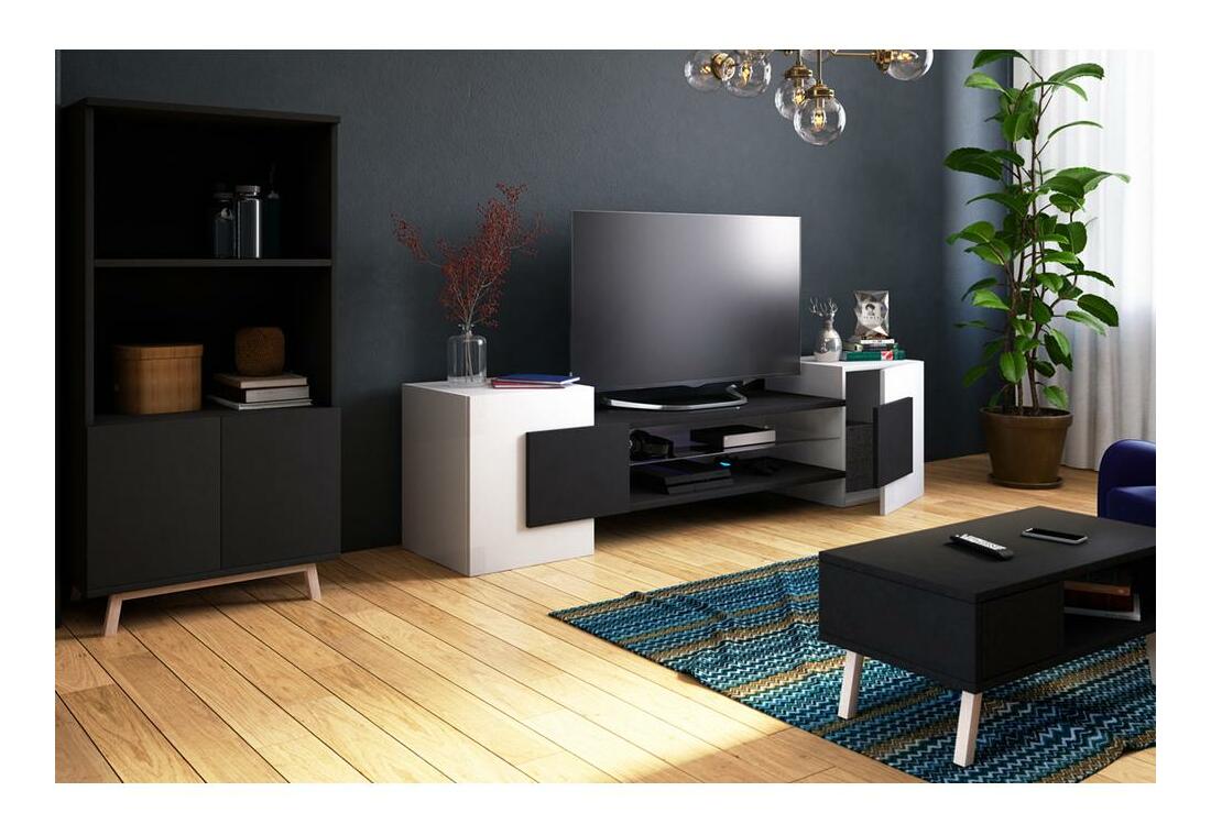 TV skříňka/stolek Gavin (s osvětlením) (bílá + černá)