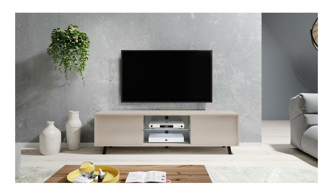 TV skříňka/stolek Leiros (s osvětlením) (sivobéžová + černá)