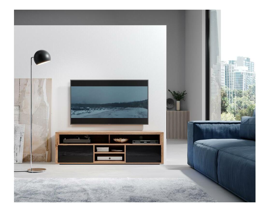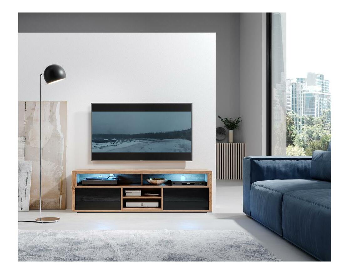 TV skříňka/stolek Lokky (s osvětlením) (dub wotan + černá)