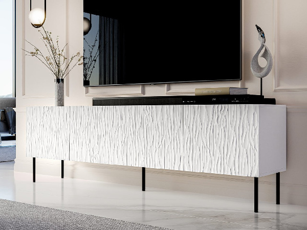 Tv stolek/skříňka je ideální volbou pro ty, kteří hledají pohodlí a styl. Vytvořte si jedinečné uspořádání interiéru pomocí skříňky Lameller RTV. Jednoduchý klasický tvar byl rozbit ozdobnými dílky uspořádanými do nepravidelných drážek. Vzhled celku určují i detaily, jako jsou vysoké nožičky – tento zdánlivě malý prvek zcela mění design a dodává skříňce na TV osobitý charakter. Za zmínku stojí i vnitřní prostor RTV skříňky, který ukrývá až 6 prostorných polic různých velikostí, na které lze úspěšně uložit elektronická zařízení a jiné předměty potřebné v prostoru televizoru. Moderní charakter nábytku podtrhuje absence úchytek – čela se otevírají díky systému „push to open“. Rozměry: šířka: 190 cm, výška: 60 cm, hloubka: 41 cm Provedení: korpus: 16 mm silná matná laminovaná deska, přední strana: MDF laminovaná deska potažená 18 mm PCV fólií s viditelnými výřezy, hrany: polypropylen (bílá RTV skříňka) nebo PVC ( úchytek: systém otevírání "PUSH TO OPEN", kovové nohy Záruka: 24 měsíců
