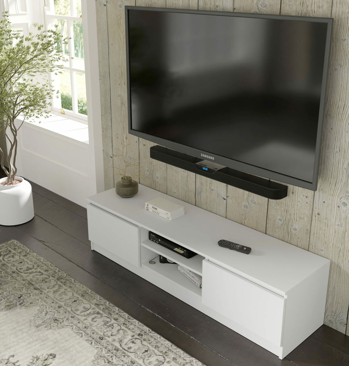 ZobrazitOdolná konstrukce a prostorný interiér tohoto TV stolku zajišťují každodenní pohodlí a pořádek. Jednotka je vyrobena z masivní 16 mm laminované desky a hladká přední strana bez úchytek zdůrazňuje moderní design a snadné používání.